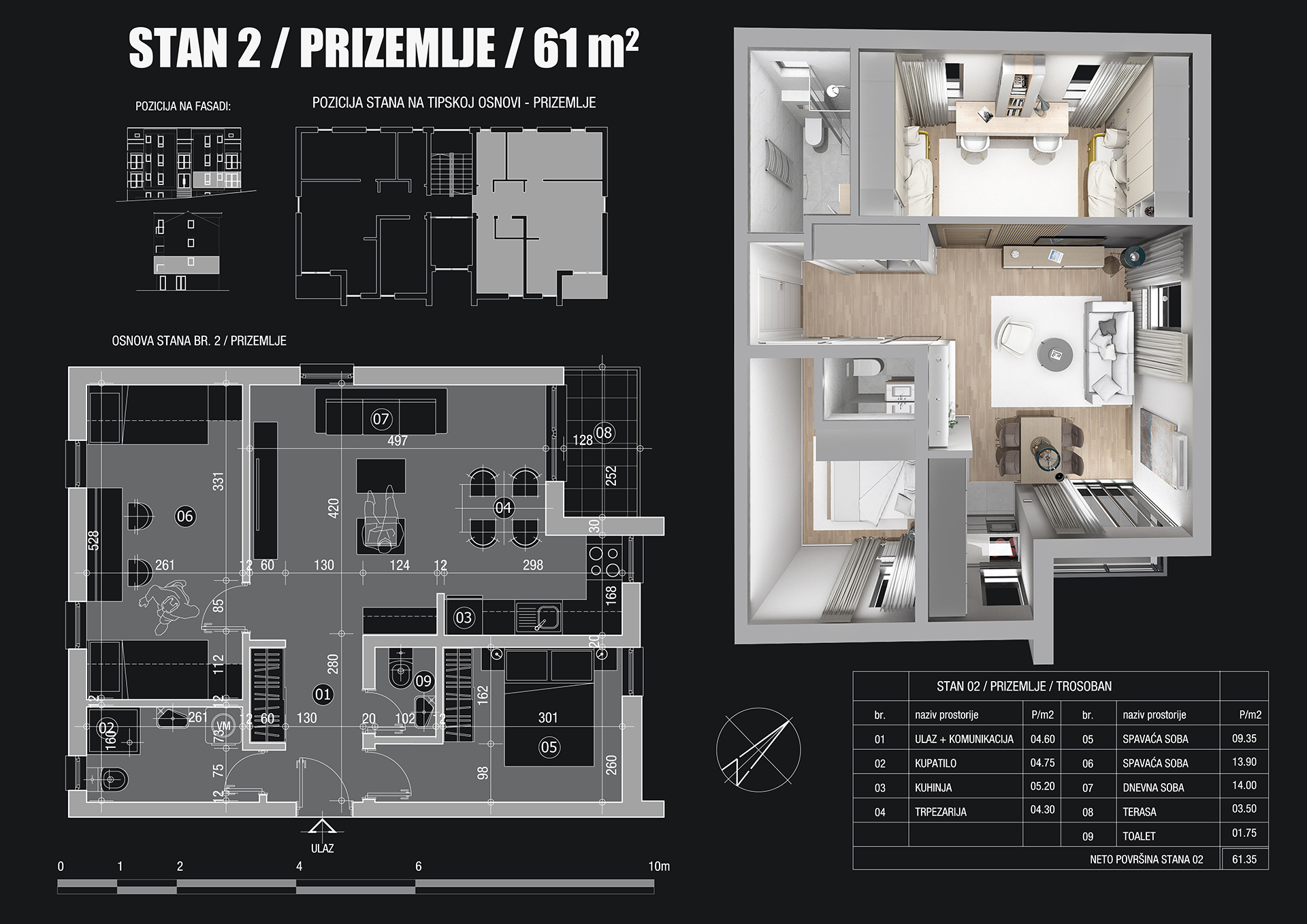 - Površina: 61m 2